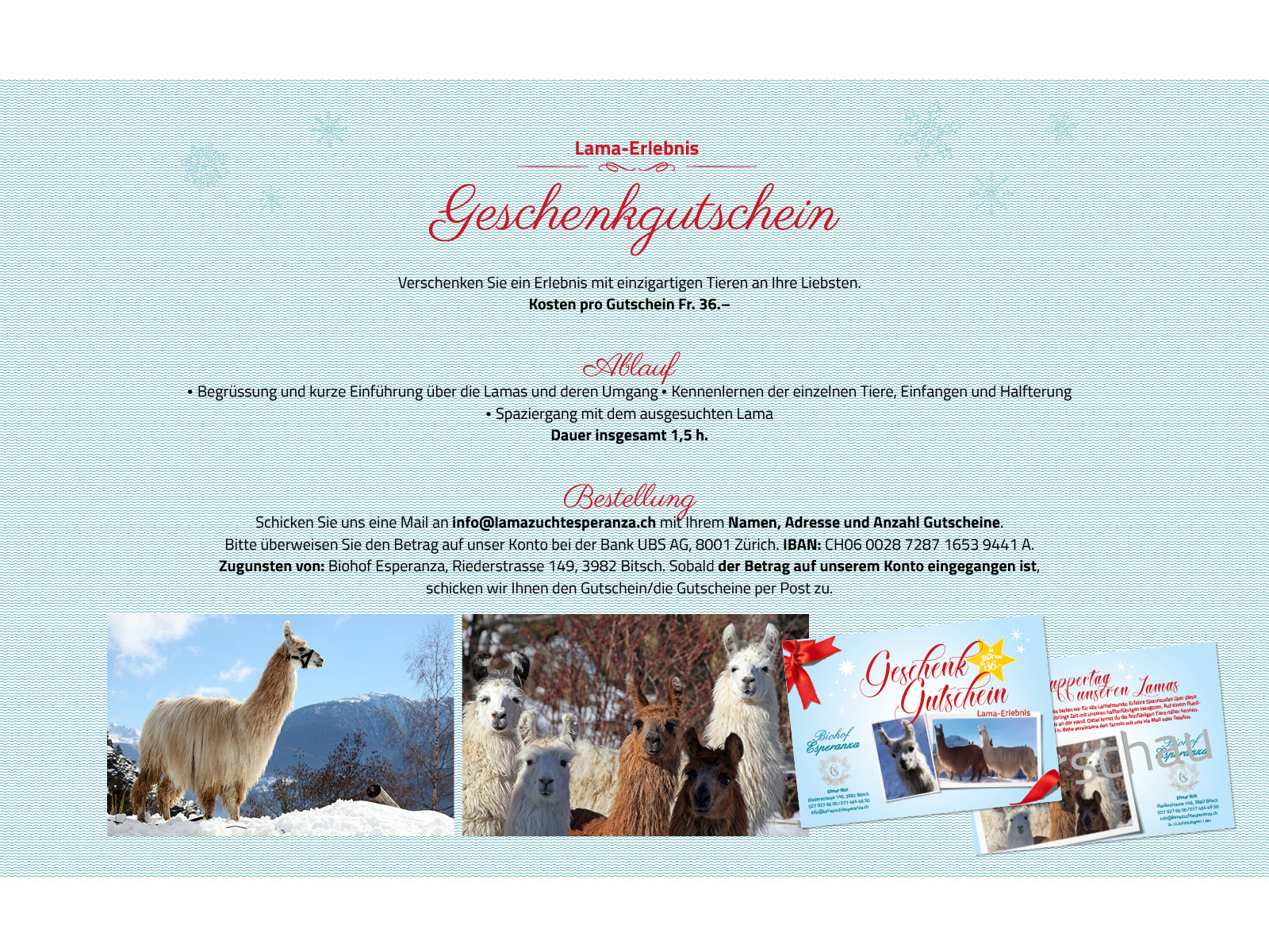 Mehr erfahren: info@lamazuchtesperanza.ch
