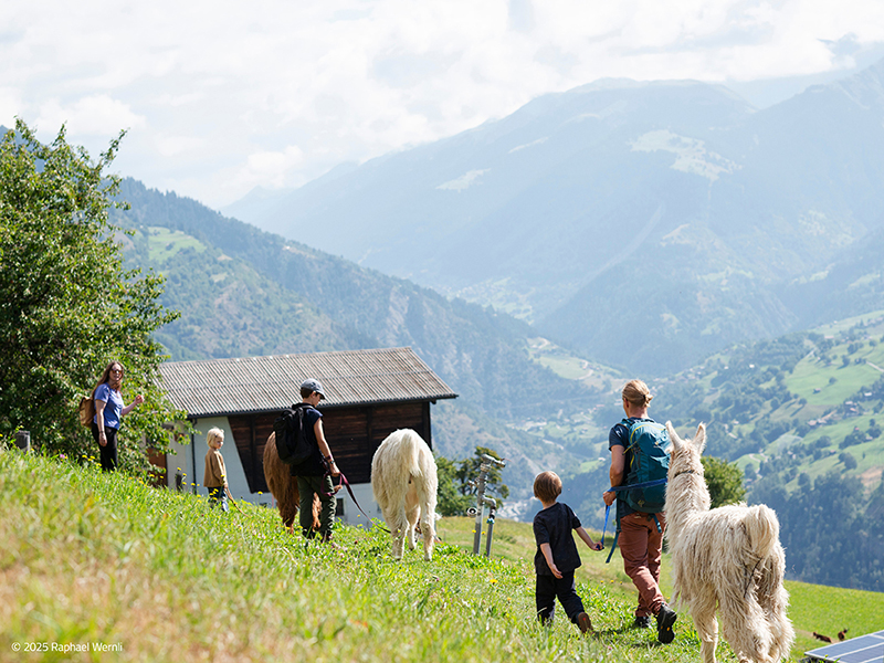 Immer mehr Studien belegen, wie der Kontakt zu Tieren das psychische Wohlergehen fördert. Die neugierige Art der Lamas überträgt sich auf die Begleiter und das öffnet uns für neue Gedanken, so dass wir mit frischen Ideen aus dem Naturerlebnis in unseren Alltag zurückkehren können. Lamas als ruhige, geduldige, aber aufmerksame Wanderbegleiter führen uns durch die urige Bergwelt des Wallis. Erleben Sie die Natur- und Tierwelt mit diesen speziellen Tieren.